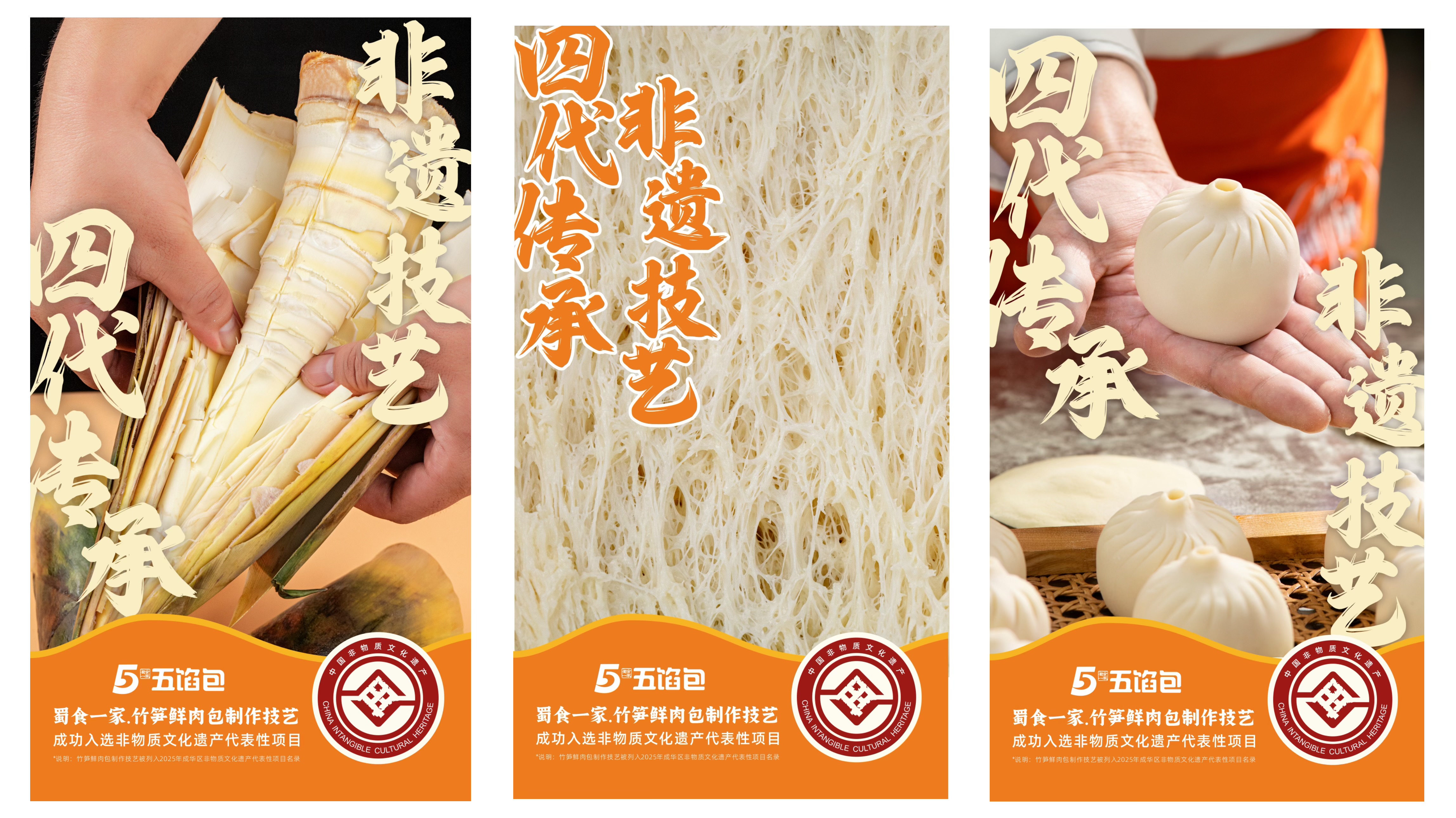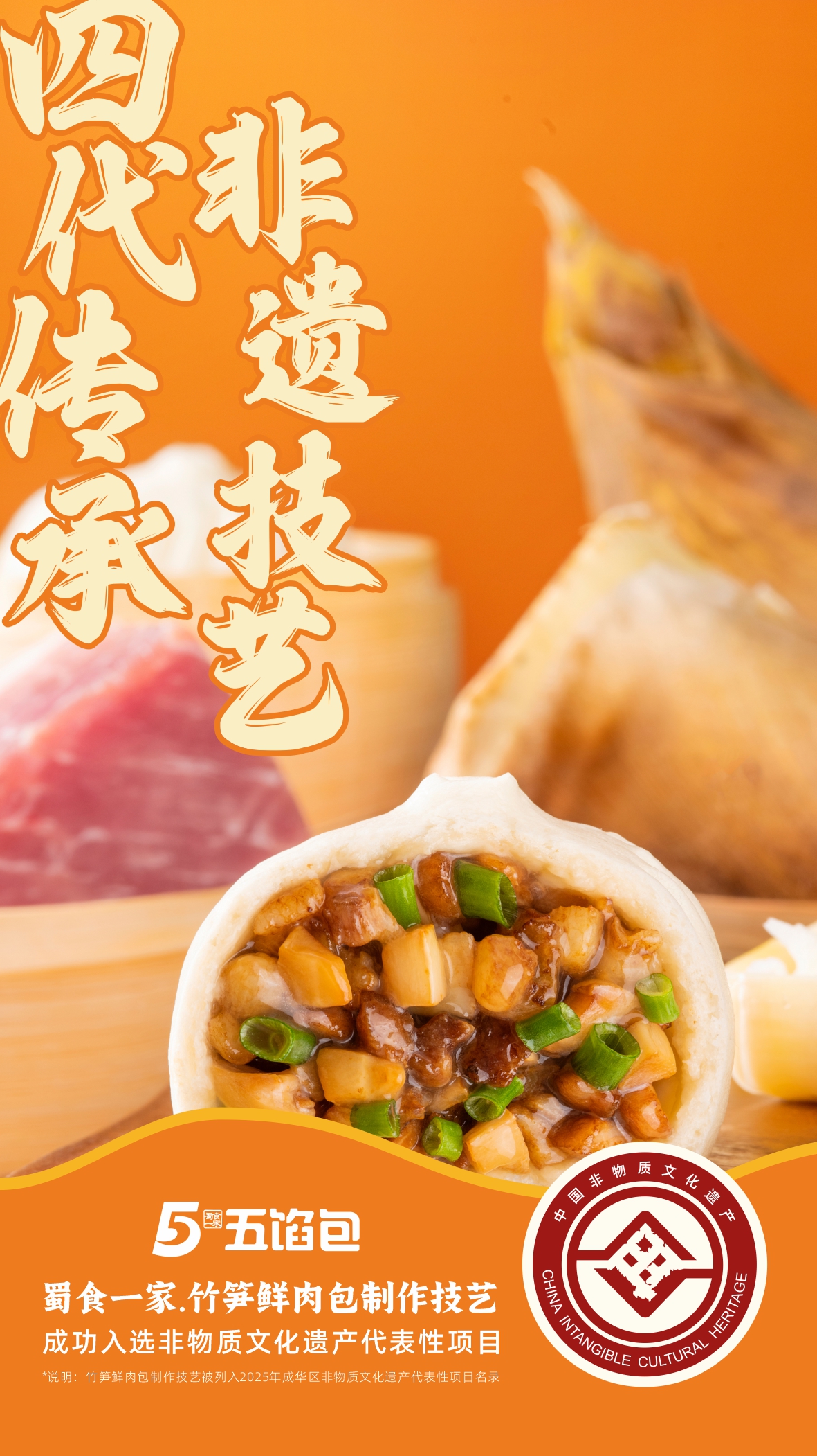 2025年12月,蜀食一家五馅包的[竹笋鲜肉包制作技艺],正式入选成都市成华区非物质文化遗产代表性项目名录。